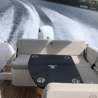 Côté confort, vous disposez à bord de tout ce qu’il faut pour passer un agréable moment sur le lac du Bourget : Taud de soleil pour ce proteger du soleil , plateforme arrière pour le bain avec échelle, bain de soleil pour une bronzette , sièges réglables, direction assistée ainsi que de nombreux rangements , pour vous faciliter la vie à bord racks à ski, table pour pique niquer ou un bon apero …Pour ces bateaux, plusieurs formules de location sont possibles : en matinée, en après-midi ou à la journée.
